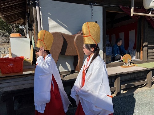 今年は午年、神社ぼ飾りも馬の飾り物です。