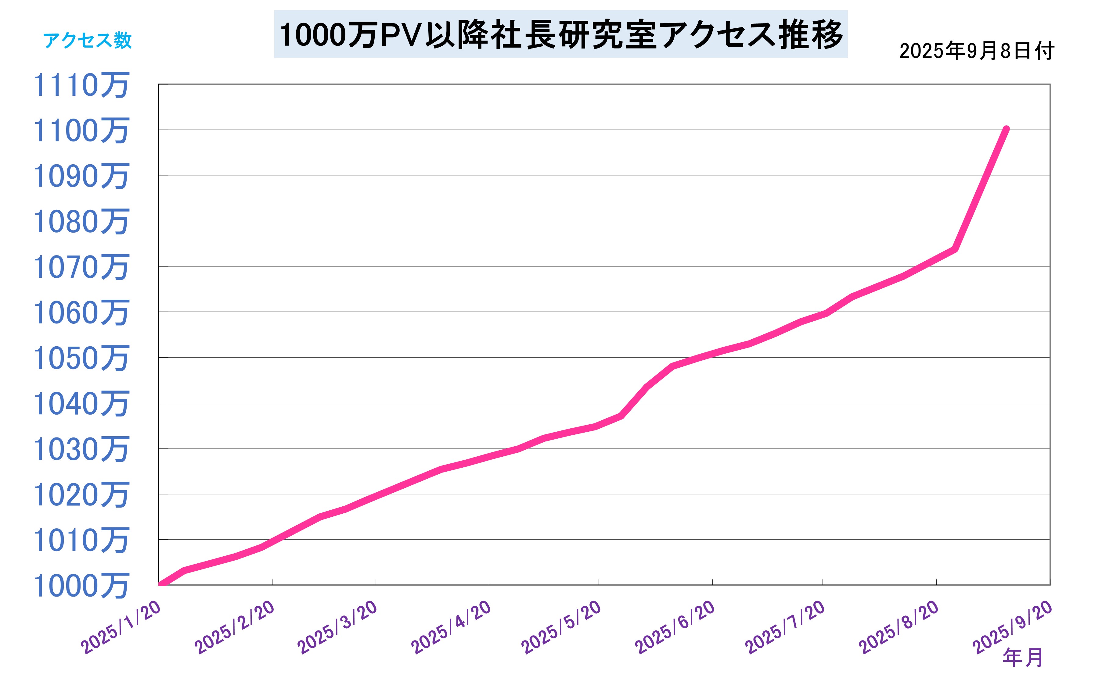 ブログアクセス数 おかげさまで 1100万PV突破! ありがとうございます