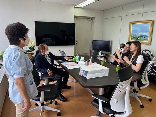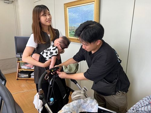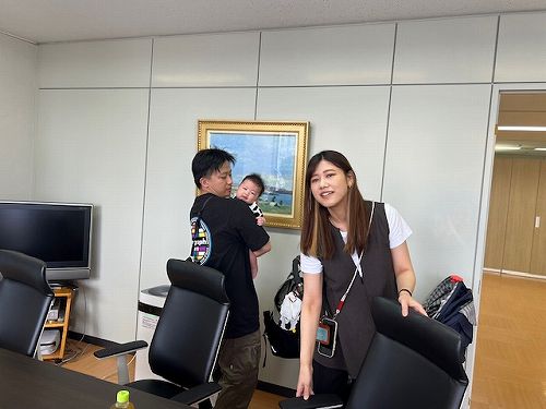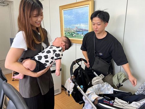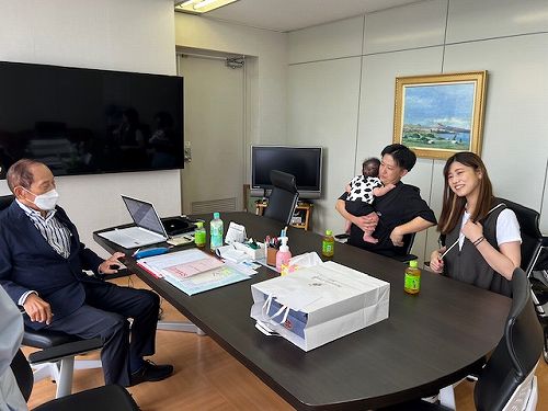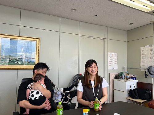 育休・育休中の澤田さんが ご主人とお子さんと一緒に来社 働く女性が家庭と仕事を 両立できる環境