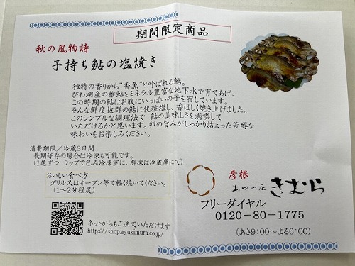 (過去ブログ:鮎を美味しく焼くには コツがあります)