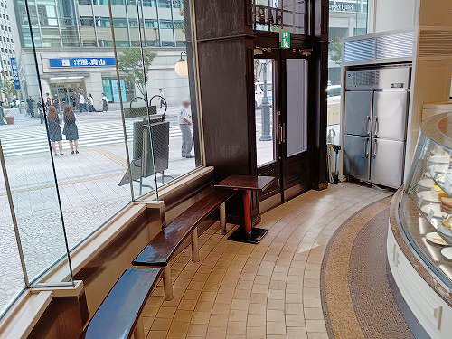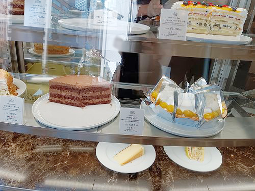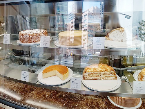 ケーキを並べたショーケースがあります。