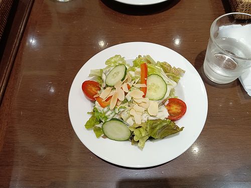 サラダ・パスタ・ケーキ・ドリンクのセット。