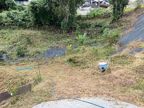 淡路市岩屋の家庭菜園 刈っても刈っても、伸びてくる夏草の草刈り イノシシに食べられ球根が全滅 とても残念です