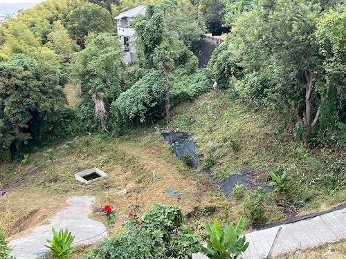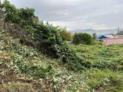 淡路市岩屋の荒れ地 耕作放棄地 刈っても刈っても、伸びてくる雑草地を 花と緑の街づくりに