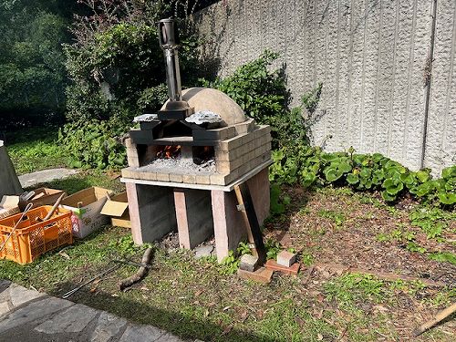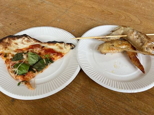 野外の窯焼きピザと焼き鳥を。