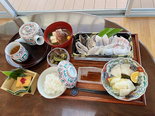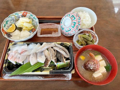 淡路市岩屋 タコステで 買ってきたお刺身で刺身定食のお昼ご飯 岩屋漁協の新鮮さと妻の心遣いに感謝する昼のひととき