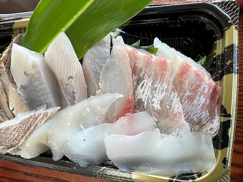 タイ、イカ、マナガツオ、炙った明石海峡の魚です。