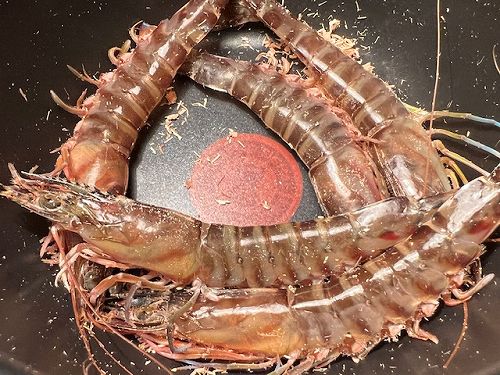 生きたまま届いたクルマエビ。