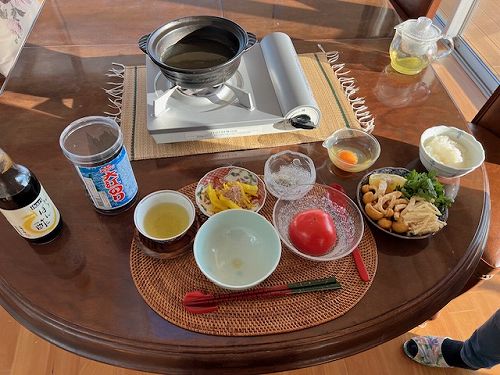淡路市 岩屋 社長の朝ごはん 昨夜の鍋の出汁を使って、贅沢なめこ雑炊