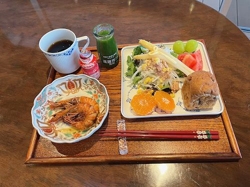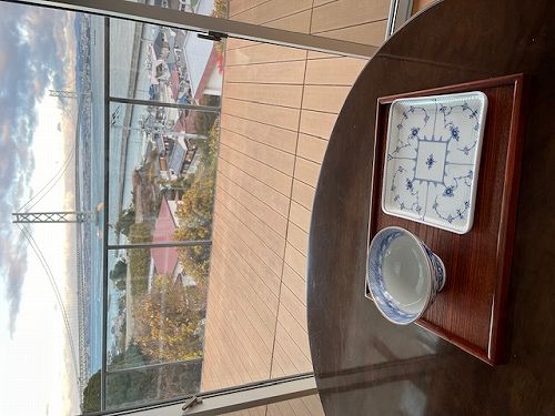 「角皿に朝ご飯を盛り付けているの、海老蔵と一緒だわ」