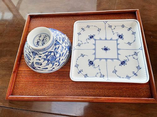 角皿とお茶碗は、ロイヤルコペンハーゲン。
