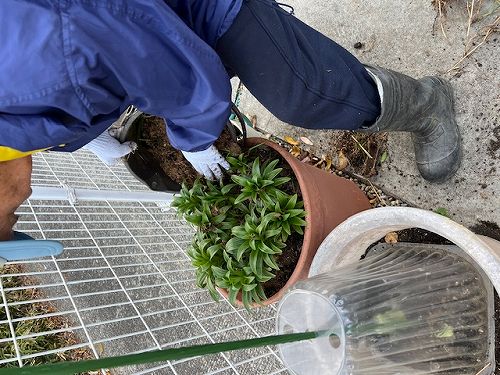 淡路市岩屋 イノシシに食べ尽くされても、残った命 ― 棚田のユリを鉢に植え替える