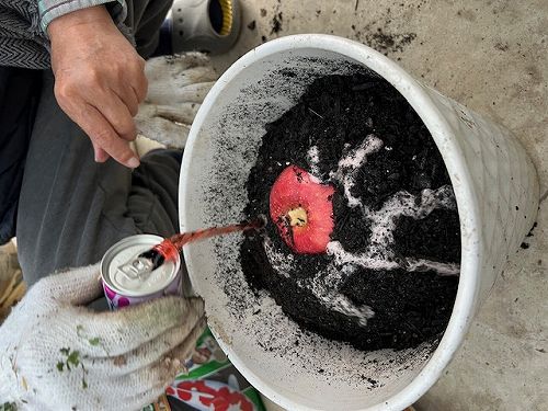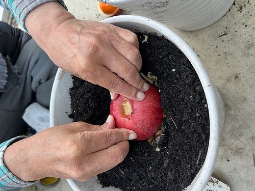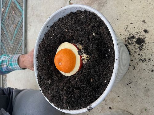 りんごとミカンのあいの子を発芽させる実験 生卵とバナナの実を肥料に 芽はでるか?