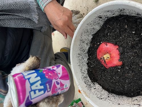 りんごとミカンをくっつけて、ファンタをかけて発芽させる