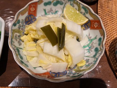 羅臼昆布と唐辛子でつけた自慢の白菜漬けです。
