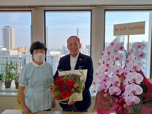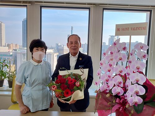 この生花は娘の院長からのプレゼントで、