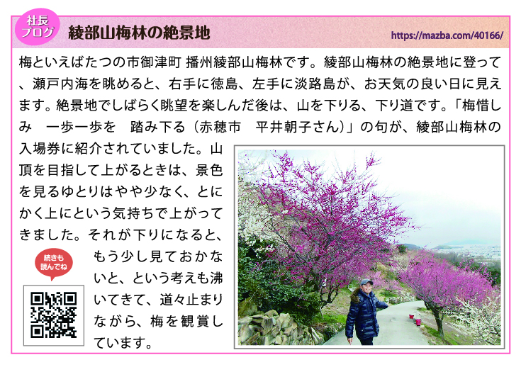 梅といえば たつの市御津町 播州綾部山梅林です。