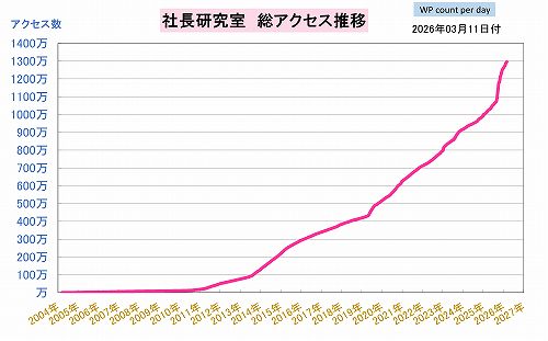 2004年2月16日開設「松葉博雄の社長研究室」アクセス数 累計1300万PV突破!