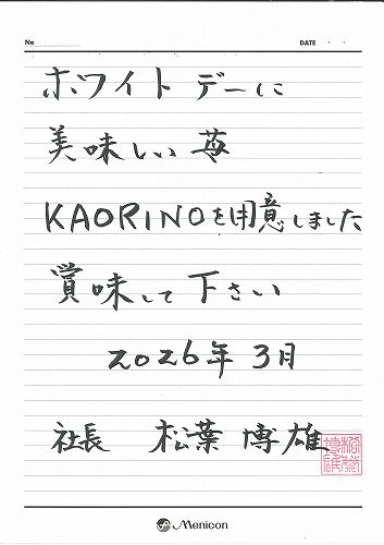 ホワイトデーのお返しは 毎年大好評の 淡路市 長畠高原のいちご「KAORINO」です