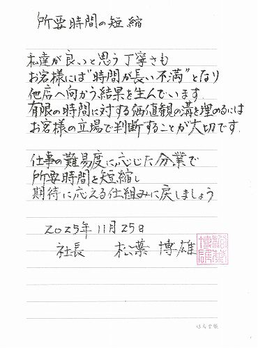 「所要時間の短縮」2025年11月 給与袋に添えて 社長メッセージ さんプラザコンタクトレンズ
