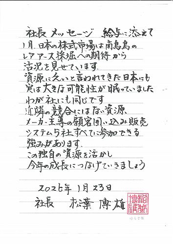 「資源がある強み」2026年1月 給与袋に添えて 社長メッセージ さんプラザコンタクトレンズ
