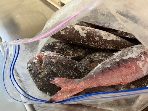 沖縄恩納村 ナップ島沖で釣った スズメタイをお刺身にするのは大変